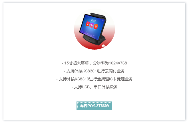 本次展會上,智能POS-KS8223、手持POS-ZT8225、零售POS-ZT8609以及金屬密碼鍵盤EPP 598M596F等主打支付產品悉數亮相,其中零售POS-ZT8609及其針對當地市場推出的系列方案尤為受到關注。這是一款小店大連鎖綜合ERP管理終端,可支持連鎖門店的業務管理、互通,大大方便經營者對旗下店鋪實施統一管理和業務統計。