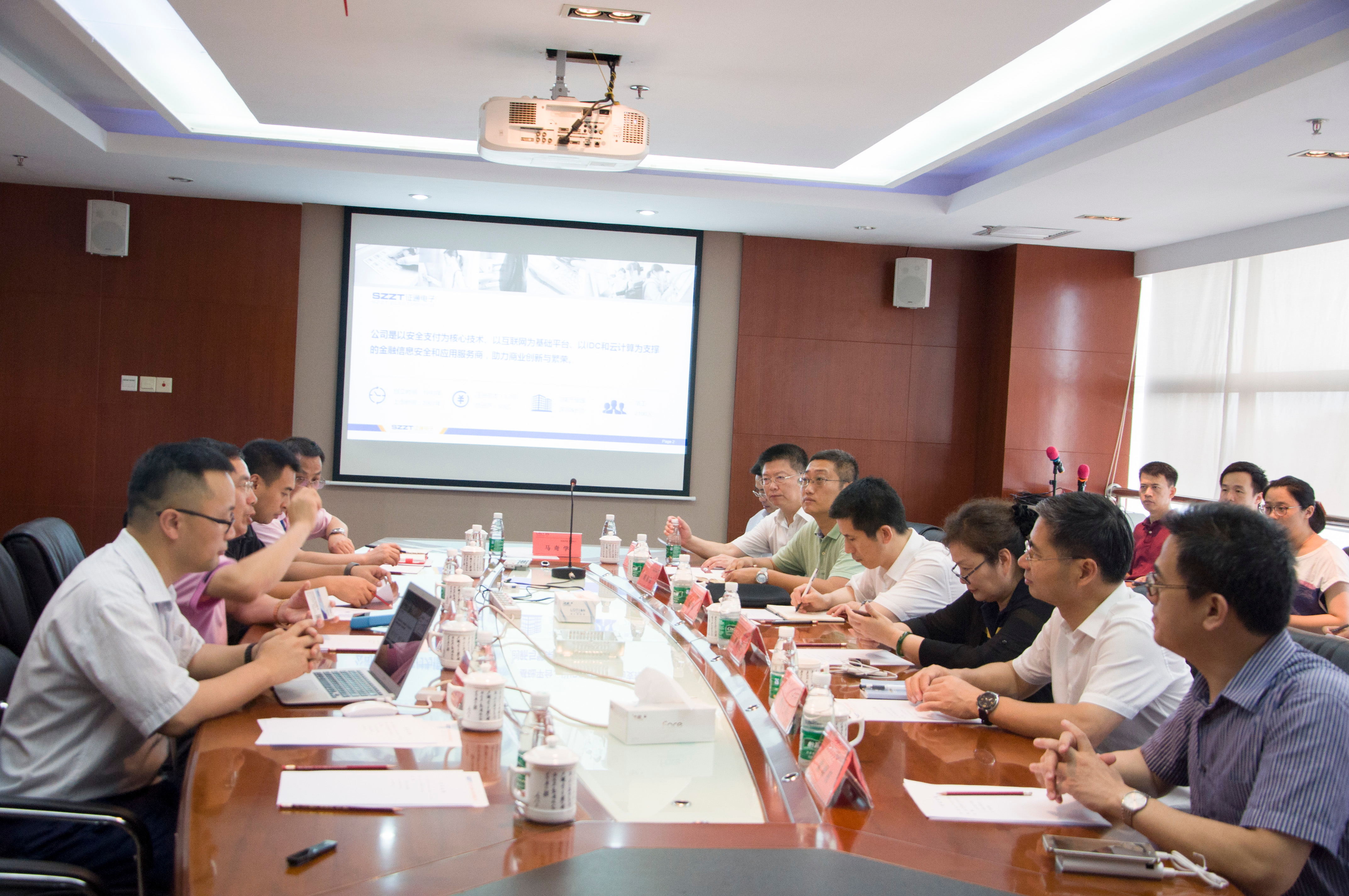 參觀活動結束后,霍煒先生一行出席了證通電子業務匯報洽談會,總裁曾勝強先生向霍煒先生詳盡闡述了公司總體規劃布局,以及近年來在國密認證方面取得的成就。霍煒先生高度肯定了證通電子多年來在“終端”加密領域所做出的成績,并對證通電子的未來發展提出一系列要求,他提出在發展“端”加密的同時,也要加快“云”領域加密工作的進行。國家十分重視密碼管理及認證工作,希望證通電子在原有的發展基礎上再接再厲,繼續推動國密領域的發展與創新。