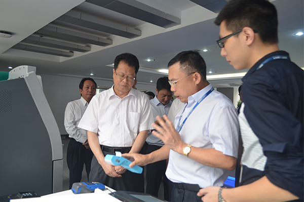 證通電子總裁曾勝強向書記介紹智能POS-KS8223