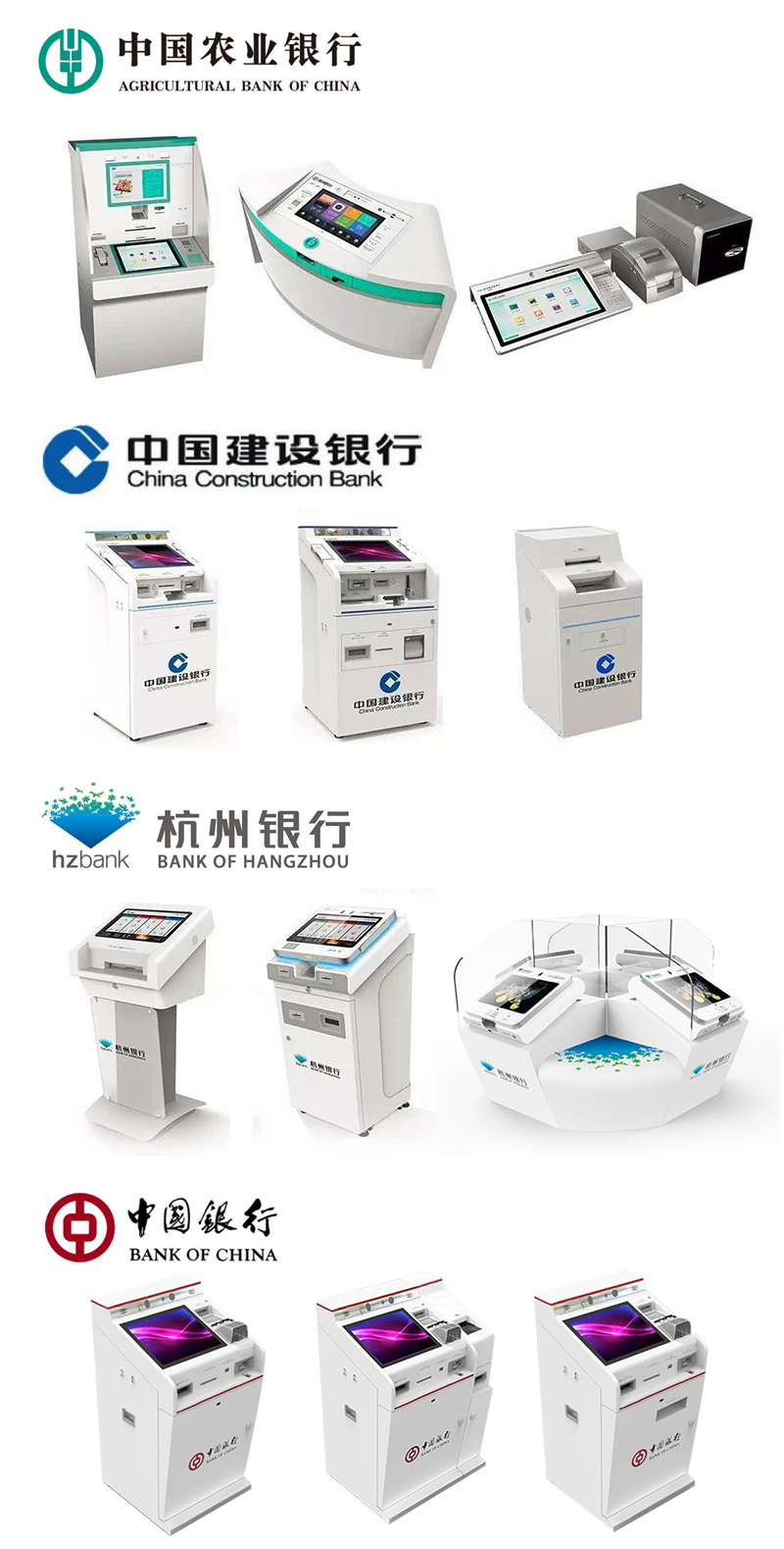 銀行網點作為銀行與客戶交互的前端,其地理上的便利性、到達網點后的客戶體驗更是大眾選擇銀行的重要原因之一。近年來,農行、建行、中國銀行、杭州銀行等大中小商業銀行紛紛加快智能網點的建設步伐,而證通電子為其提供了智慧柜員機等軟硬件的解決方案,幫助銀行實現智能化,提升網點的運營效率,降低運營成本,提升客戶體驗。