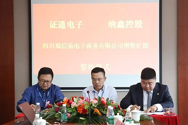 本次合作納鑫集團將對證通旗下全資子公司——四川蜀信易電子商務(wù)有限公司(以下簡稱“蜀信易”)進行增資擴股,譜寫產(chǎn)業(yè)與金融相結(jié)合的新型合作模式。證通電子總裁曾勝強、納鑫集團董事長孫明達、蜀信易董事長張錦鴻等出席了此次簽約儀式。
